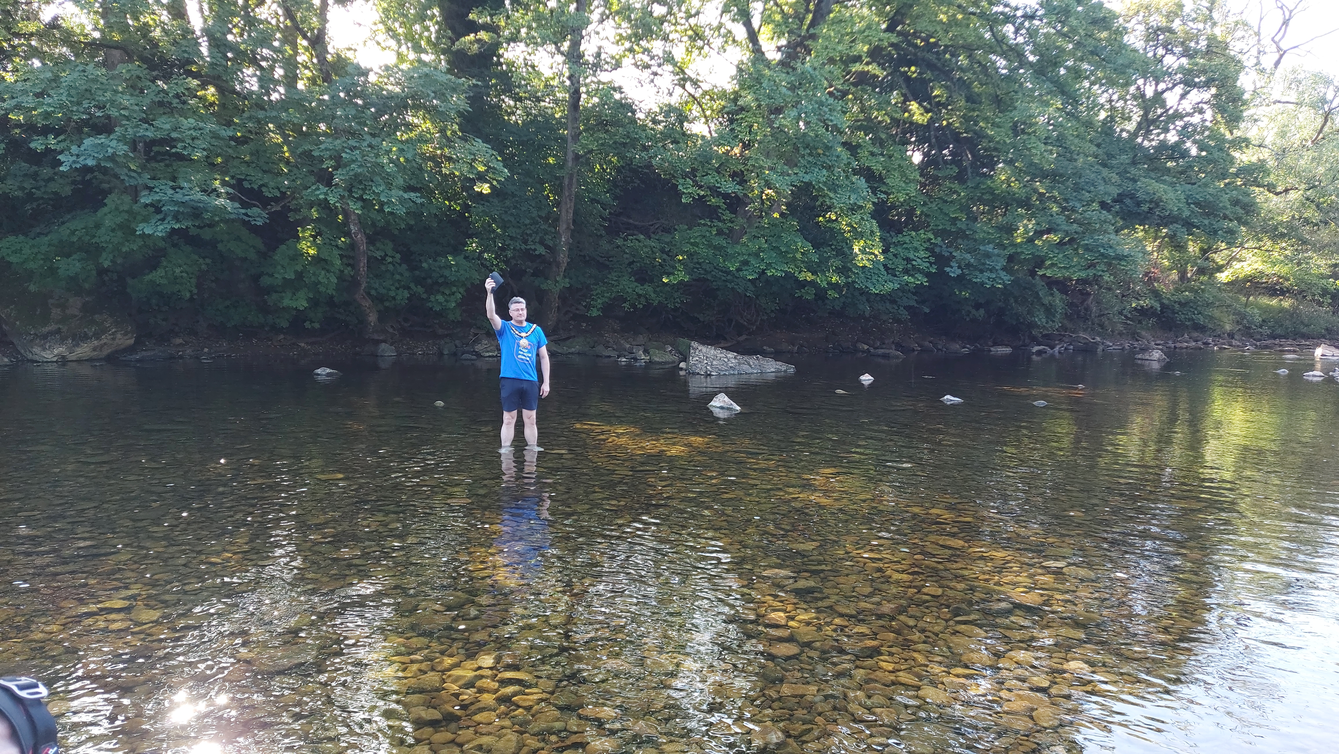 We were led to a bridge over the Swale, where the first proclamation was made and money thrown into the air. We then followed the river to a specific place where the mayor, now out of ceremonial clothes, waded into the river whilst another declaration was made. The mayoral party all shed their gowns and fancy hats except the mayors chain, which he wore the whole time.