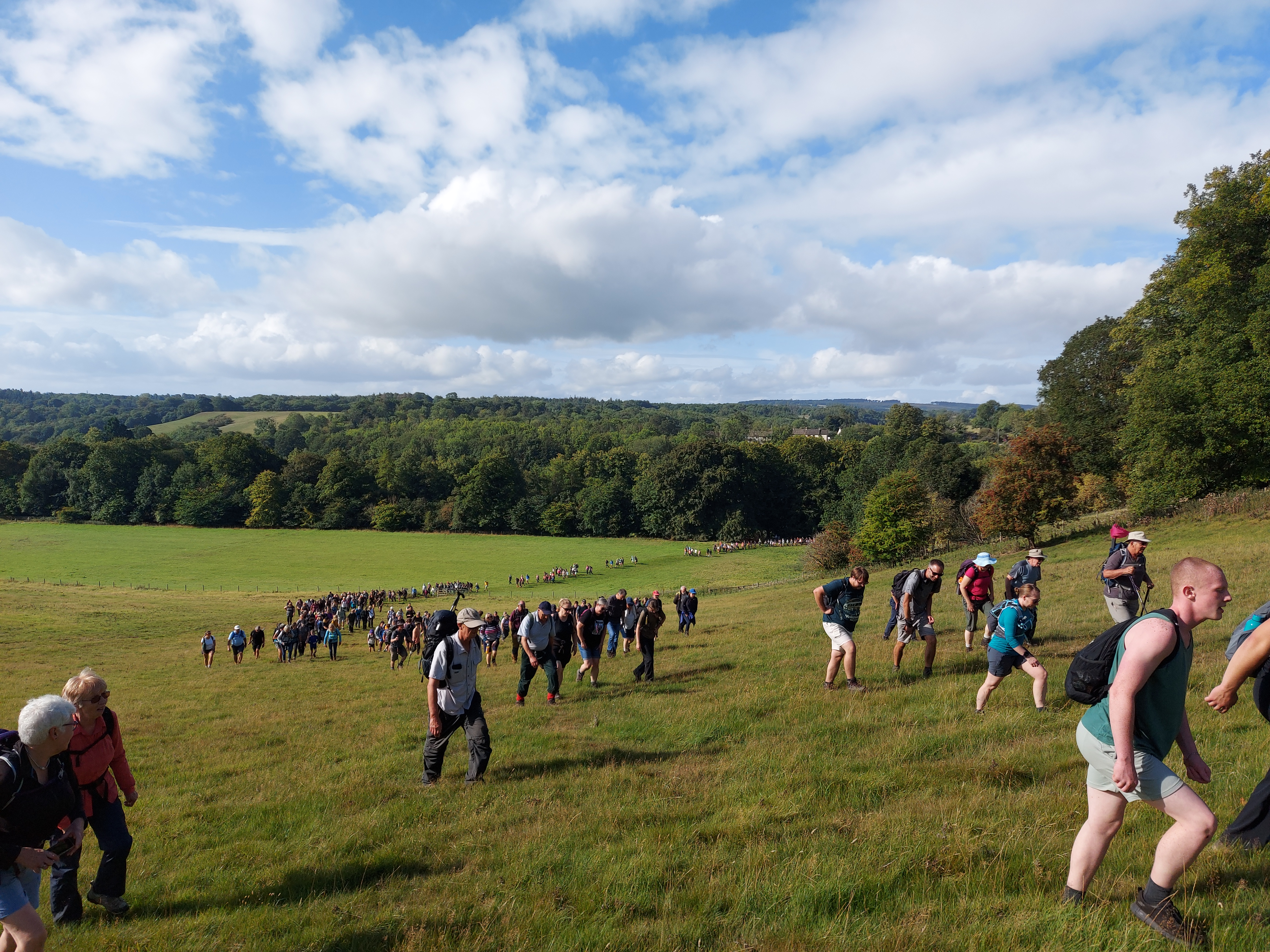 I was right at the front of a crowd that some suggested might be 900 strong. As we walked up hills and across fields, the crowds snaked behind us. Traffic was stopped so our vast horde could cross roads.
